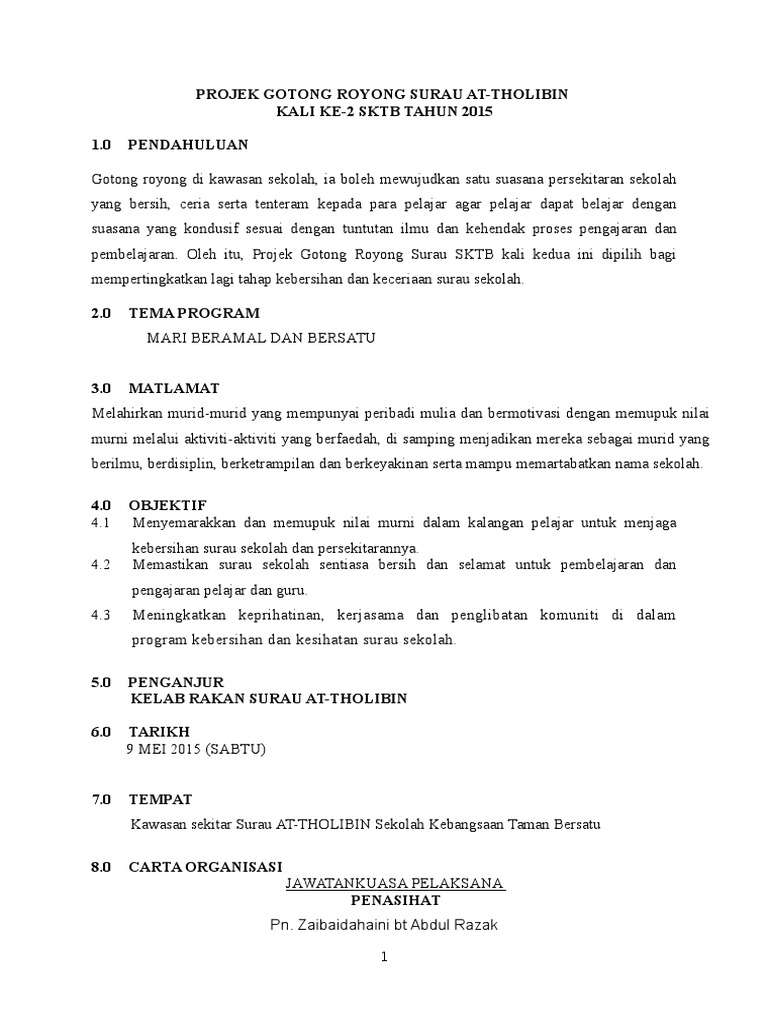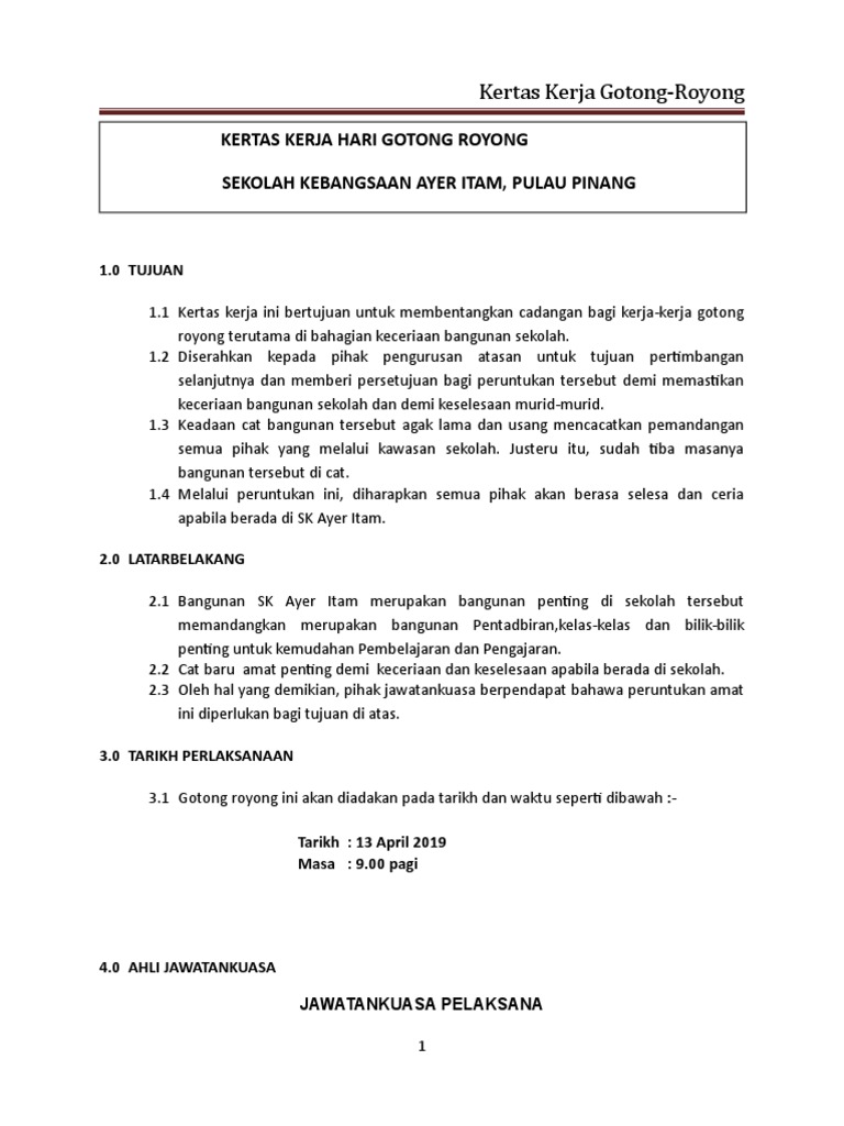 Contoh Kertas Kerja Program Gotong Royong Di Sekolah